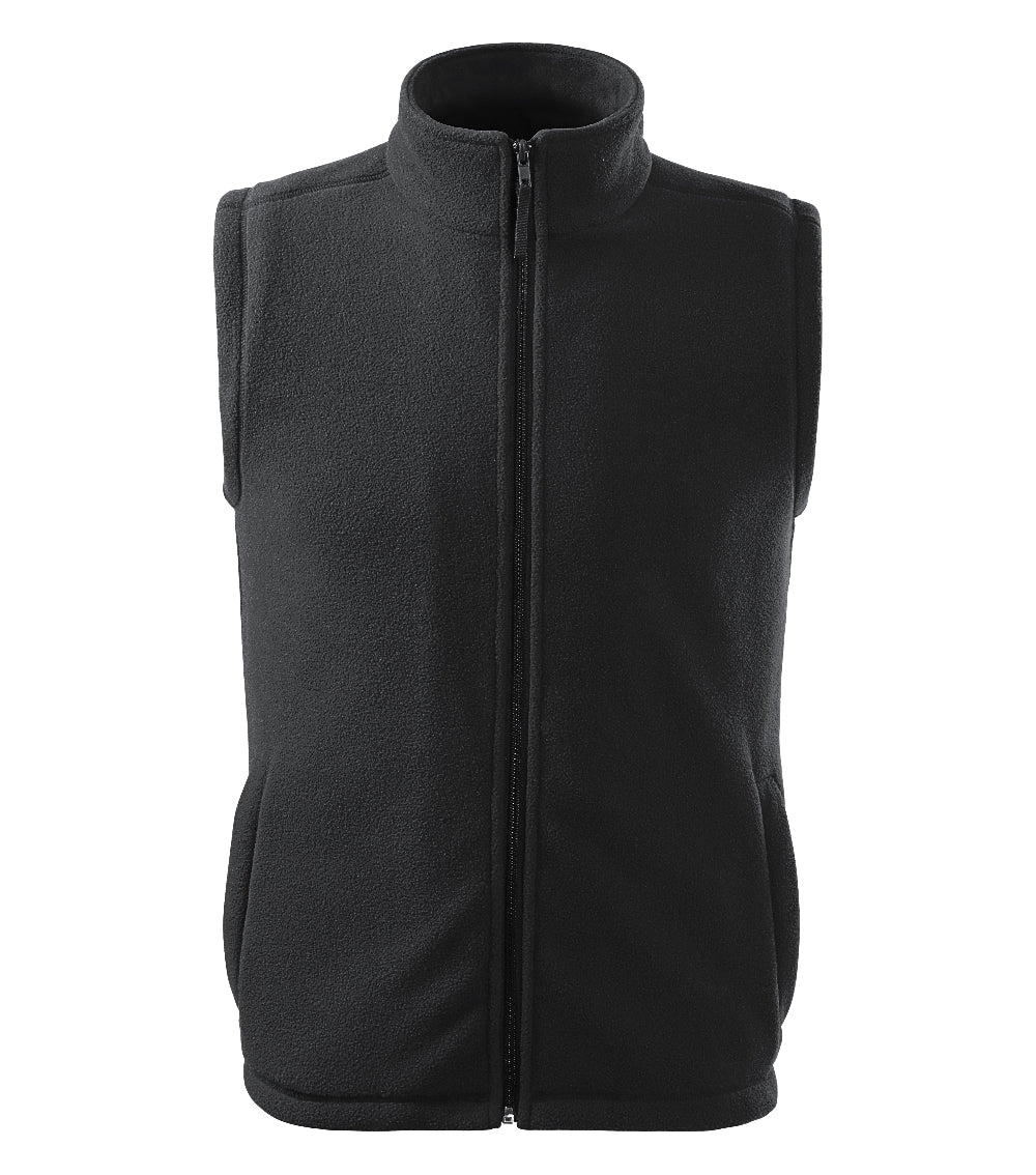 Vesta unisex fleece, din poliester, dintr-un material izolant cu fermoar spiralat pe toata lungimea. Totodata polarul are si buzunare cu fermoar.
